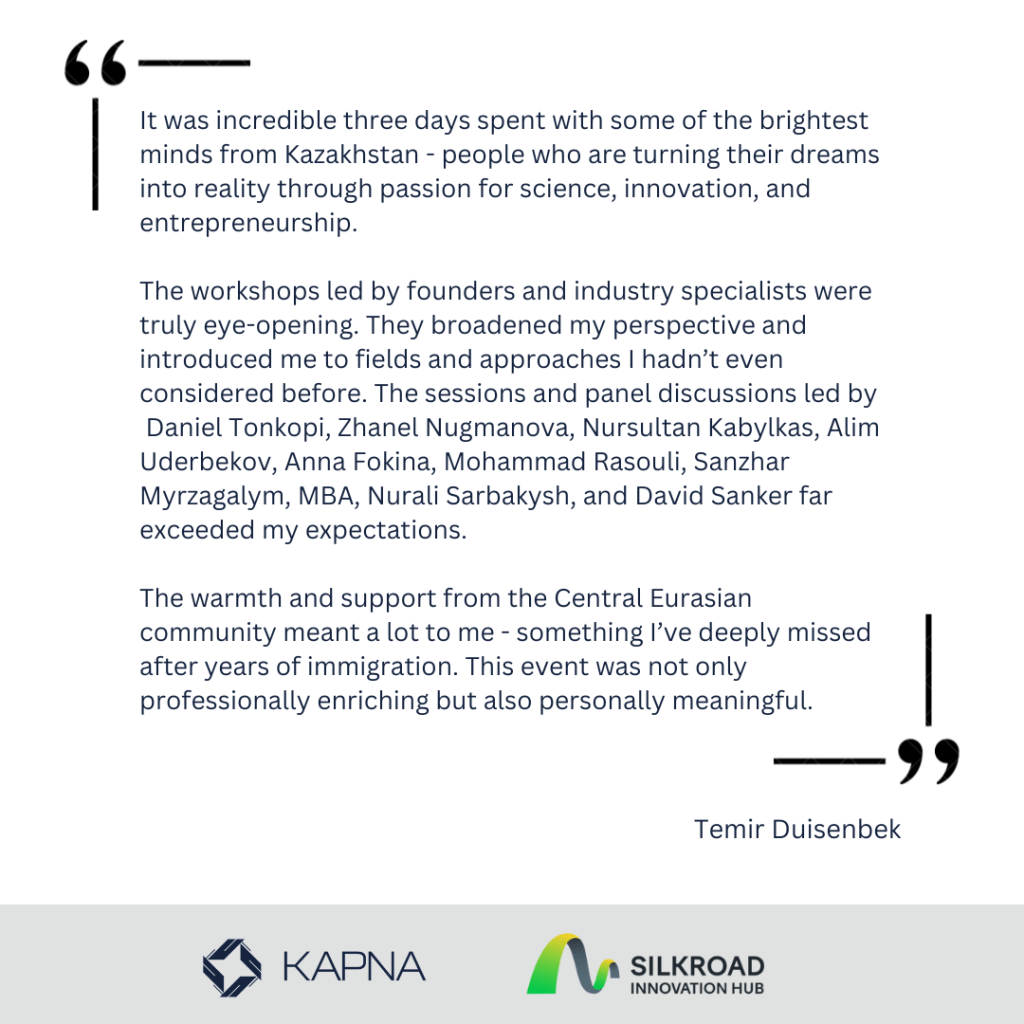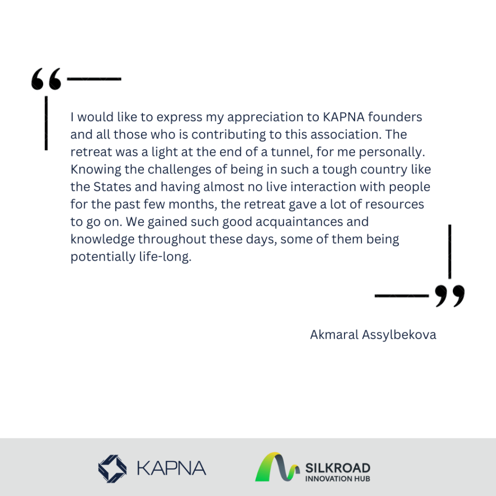 This retreat was made possible with the generous support of Silkroad Innovation Hub, who not only hosted the event but also helped organize it seamlessly and connected our members with the local innovation community. We are grateful to all our panel speakers and presenters for sharing their insights, and to the Consulate General of Kazakhstan in San Francisco for their warm welcome as well.